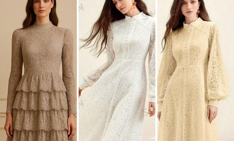 مدلهای شیک و جذاب پیراهن مجلسی با تزیینات گیپور