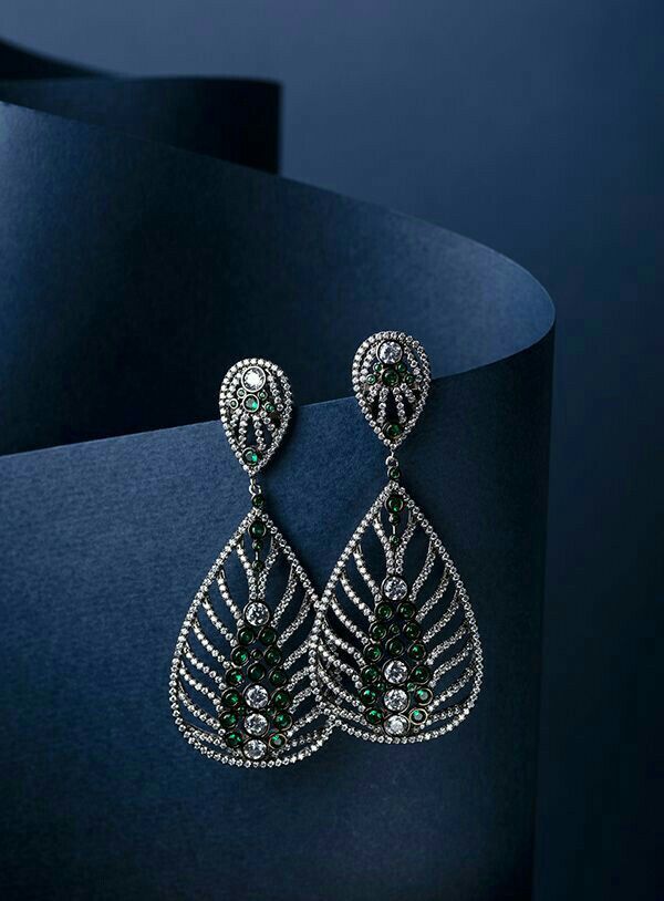 گوشواره‌های آویز قطره‌ای از طلا با سنگ‌های جواهری (مثل یاقوت کبود یا زمرد)، ترند لوکس ۲۰۲۵ه.
