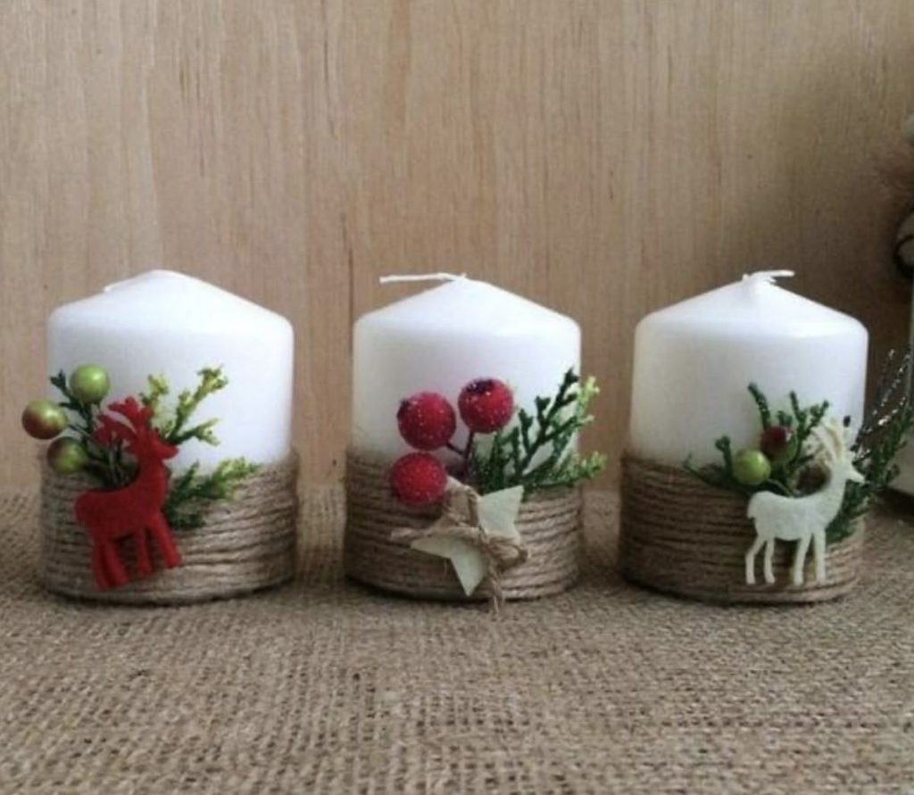 - فضای بوهو: شمعهای با روبان کنفی رو با ژاکت بوهو، شال پشمی و گوشوارههای رزینی ترکیب کنید.