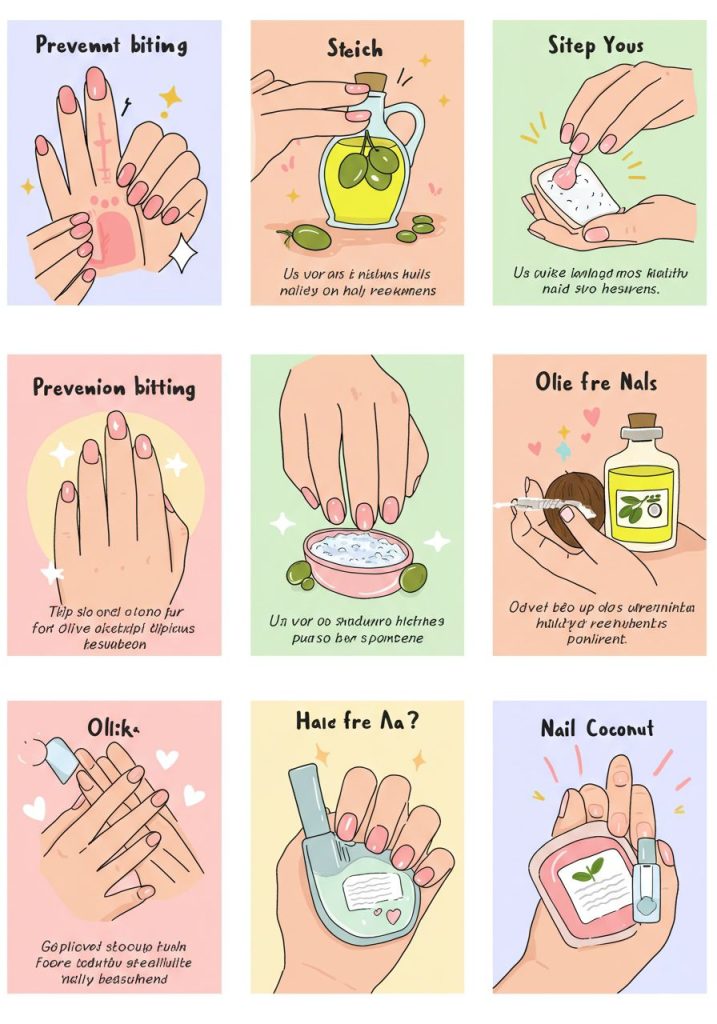 ۳. اعمال: روغن رو روی کوتیکول و پوست دور ناخن ماساژ ملایم، ۵-۷ دقیقه – دایرهای.