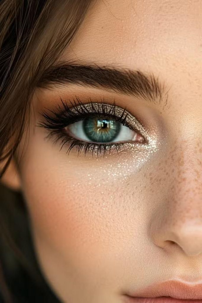 • برای درخشش بیشتر، مرکز پلک رو با سایه شیمری طلایی highlight کنید.