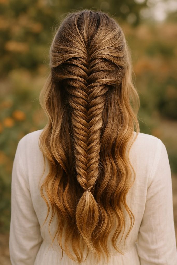 ۴. بافت‌های نیمه‌باز (Half-Up Braids)