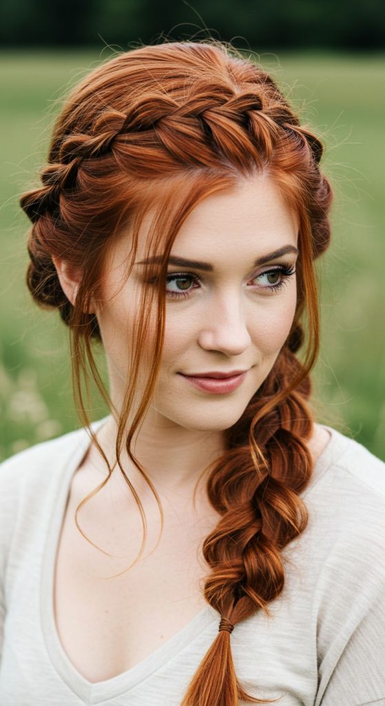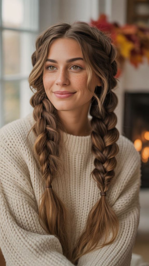 ۵. بافت‌های با اکسسوری پاییزی (Braids with Accessories)