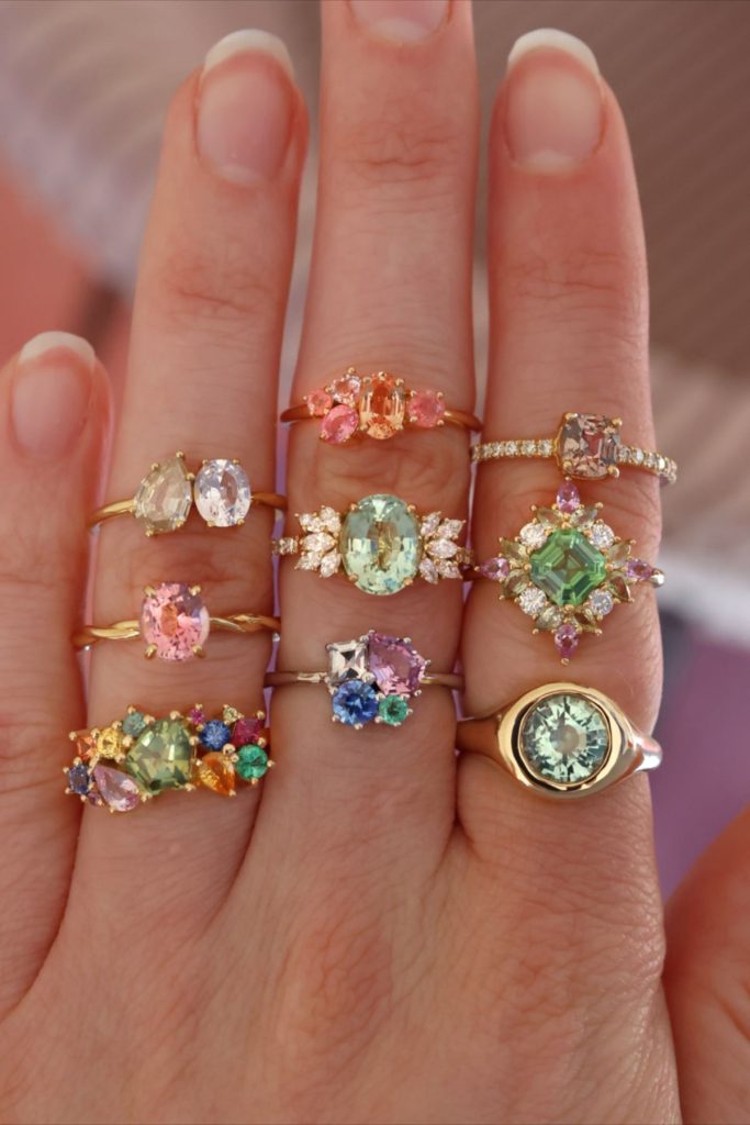 ۲. انگشترهای با سنگهای رنگی (Colored Gemstone Rings): جواهری و پاییزی