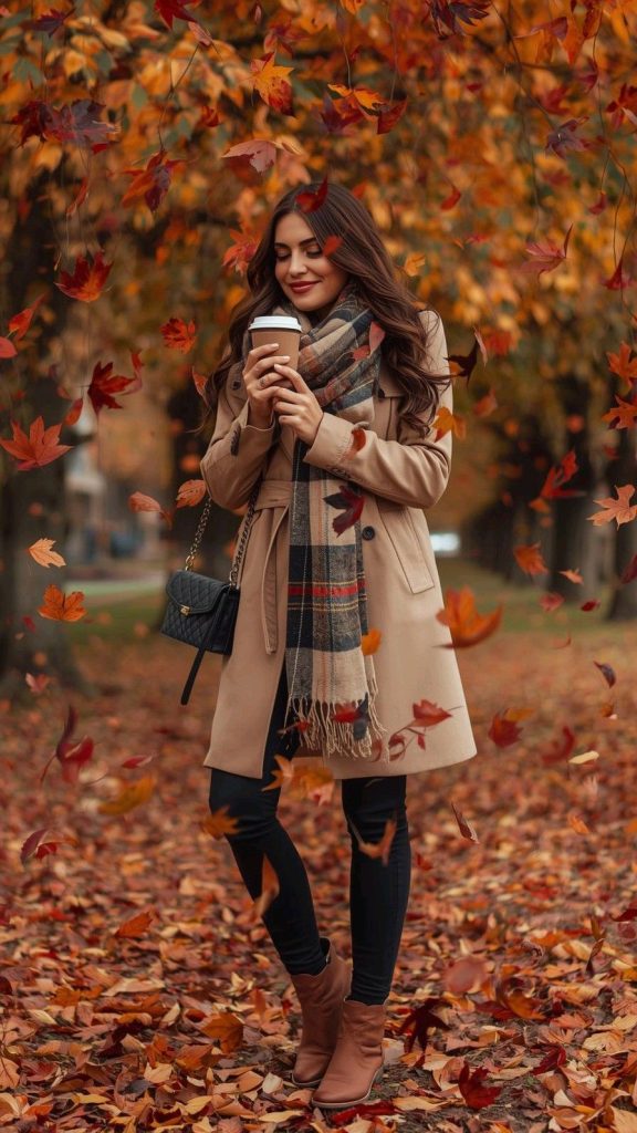 • برای زنان: شال پشمی چهارخونه با شلوار جین بگ، هودی خاکستری و کتونی سفید. یه کیف دوشی چرم قهوه‌ای اضافه کنید.