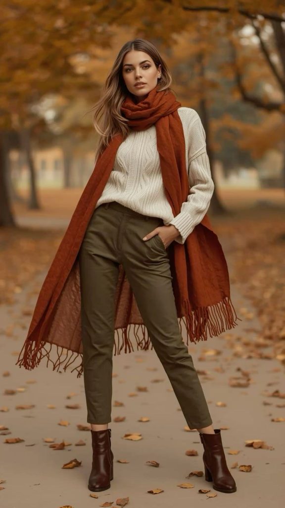 • ایده پاییزی: شال رو به شکل روسری روی سر بندازید و با یه لاته کدو حلوایی بدون قند تو پارک قدم بزنید. نکته: شال‌های پشم سبک (مثل مرینو) برای هوای ملایم پاییز بهترن.